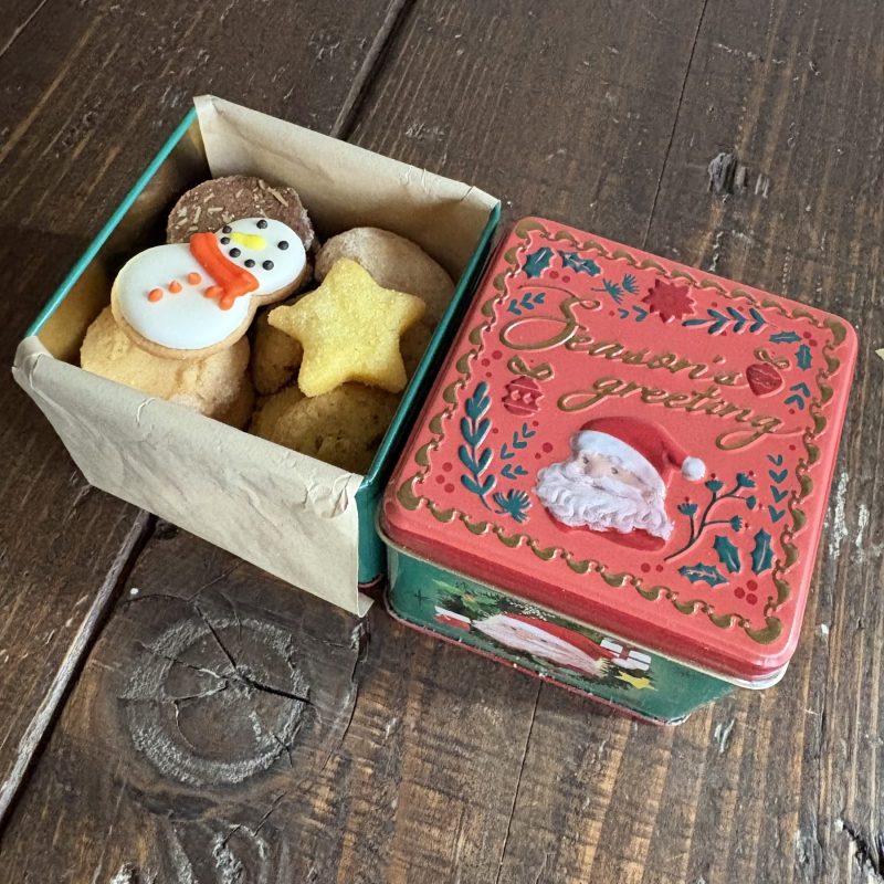計4種のクッキーと星のクッキー、スノーマンのアイシングクッキーが入った