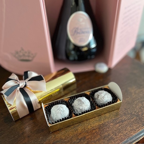 今年はヴィノージュのトップキュベ【プランス】のロゼを使用し、クラッシックなトリュフスタイルに仕上げました