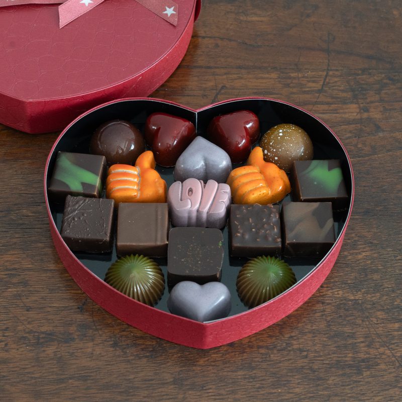かわいらしいハートのボックスに入ったボンボンショコラの詰合せ